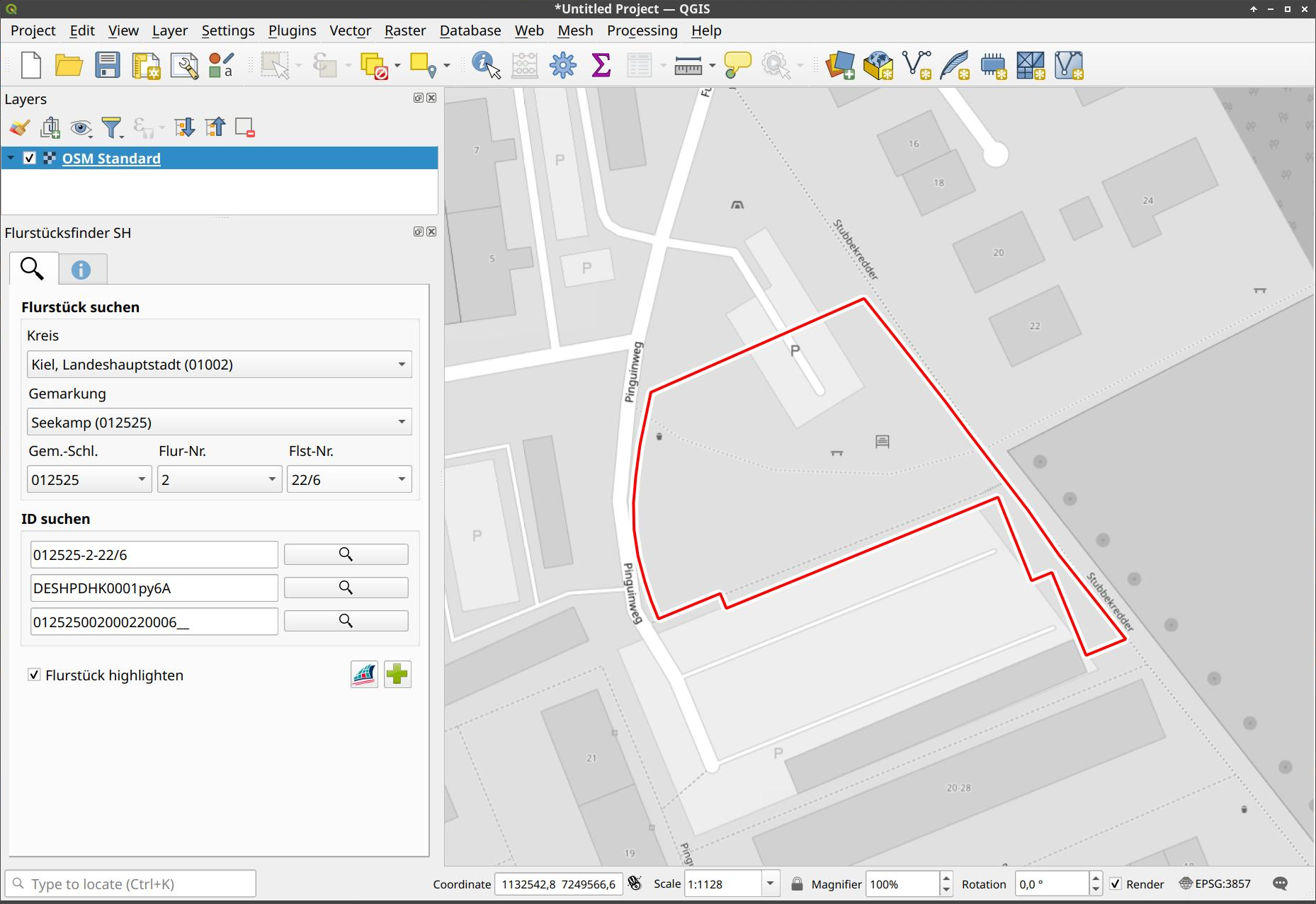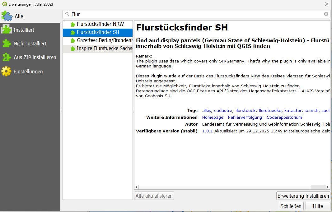QGIS-Plugin zur Suche von Flurstücken in Schleswig-Holstein